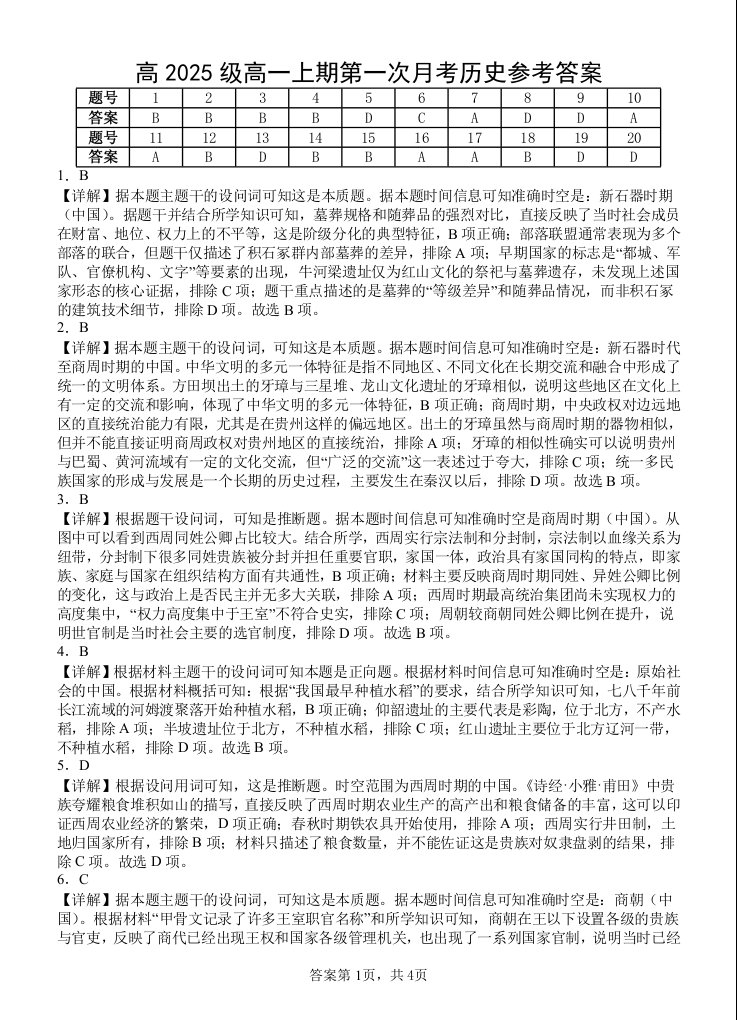 高一历史答案--四川省遂宁市射洪中学2025-2026学年高一上学期10月月考