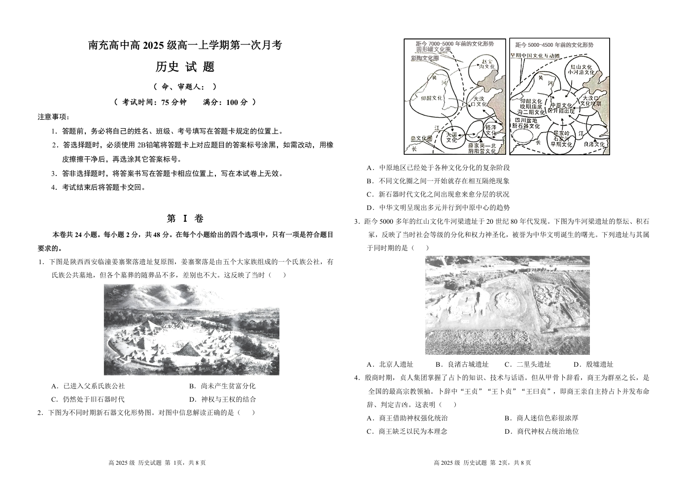 高一历史--四川省南充高级中学2025-2026学年高一上学期10月月考