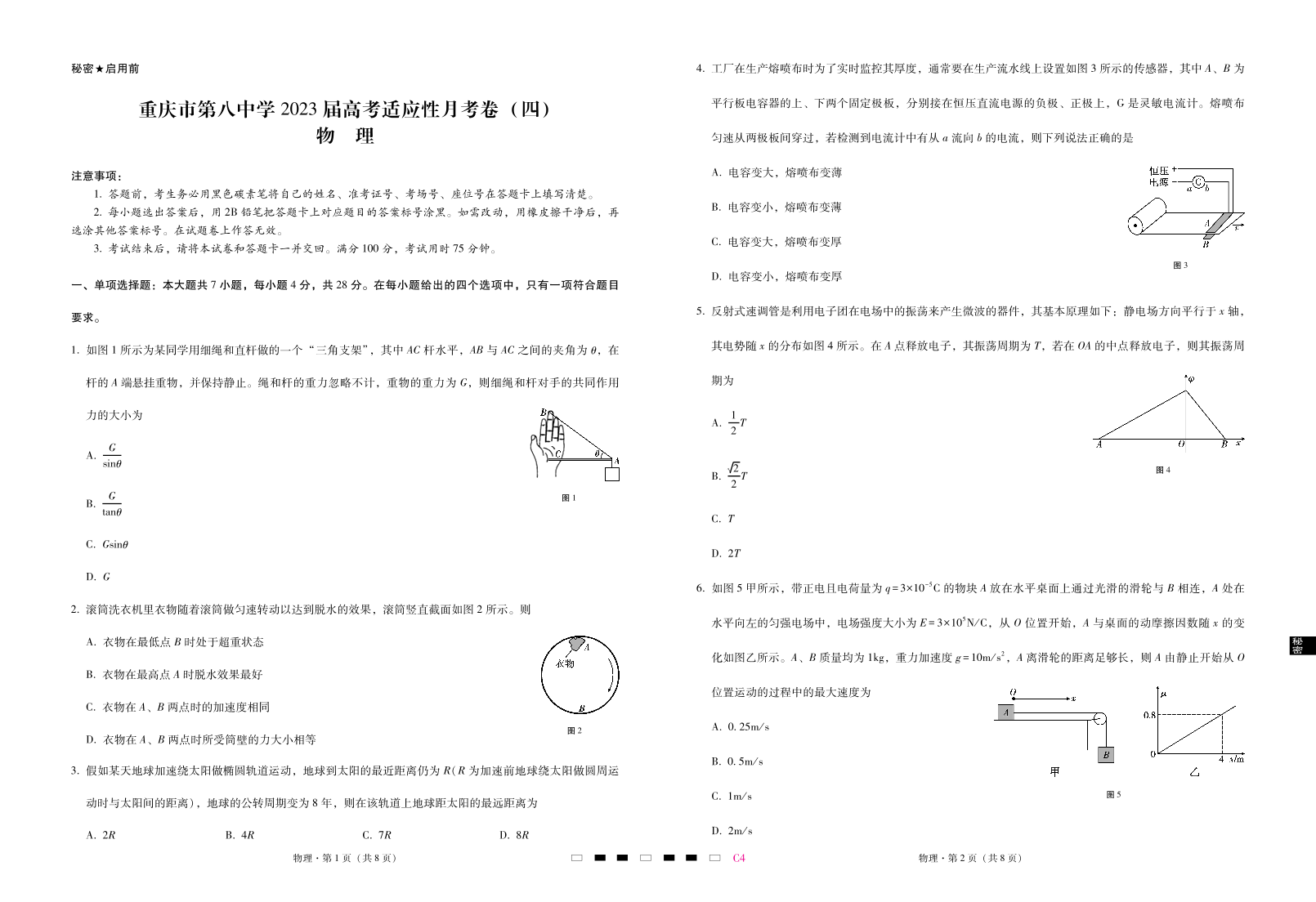 高三物理-重庆市第八中学2023届高考适应性月考卷(四)