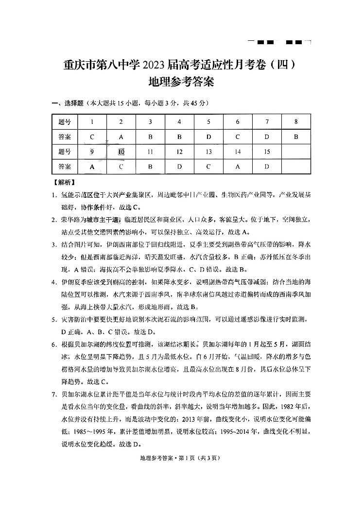 高三地理答案-重庆市第八中学2023届高考适应性月考卷(四)