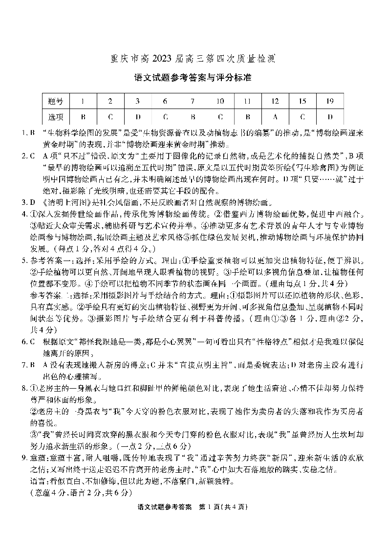 高三语文答案-重庆市南开中学2023届高三质量检测(四)