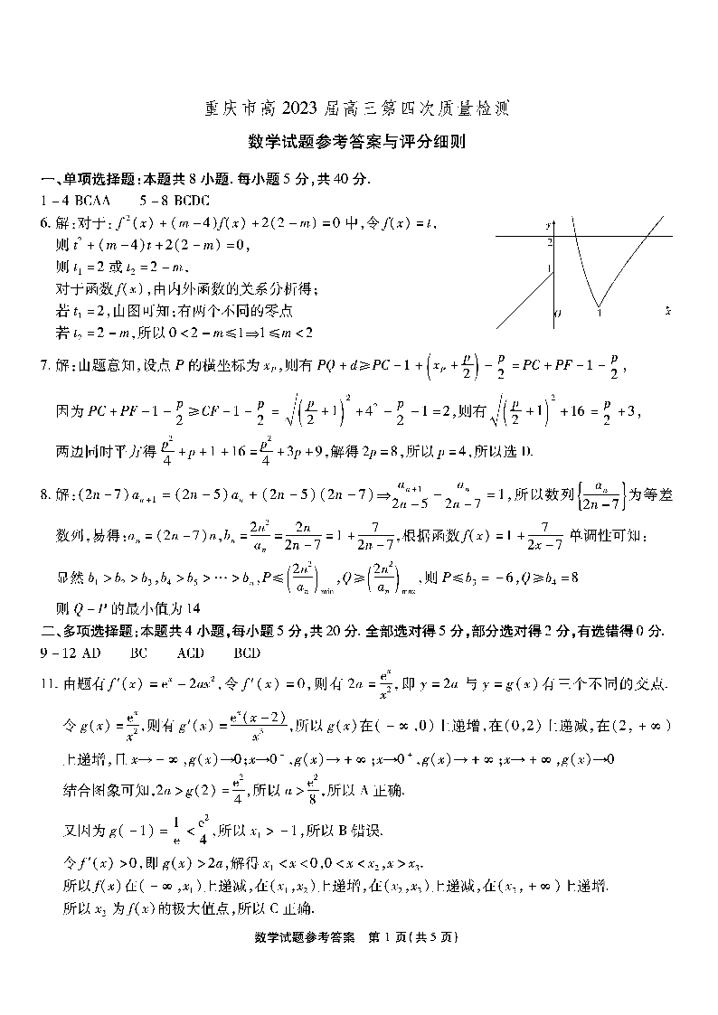 高三数学答案-重庆市南开中学2023届高三质量检测(四)