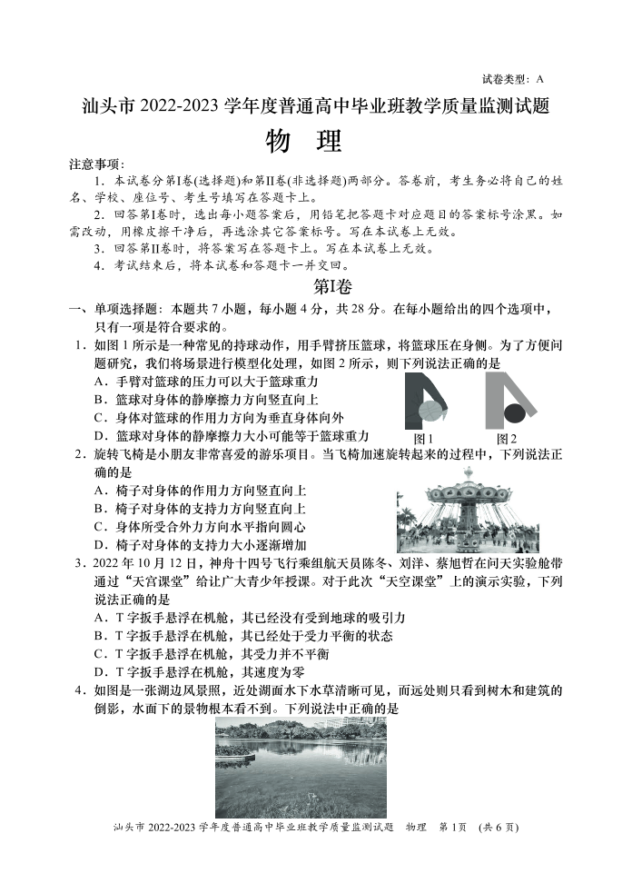 高三物理+答案-广东省汕头市2023届高三上学期12月教学质量监测