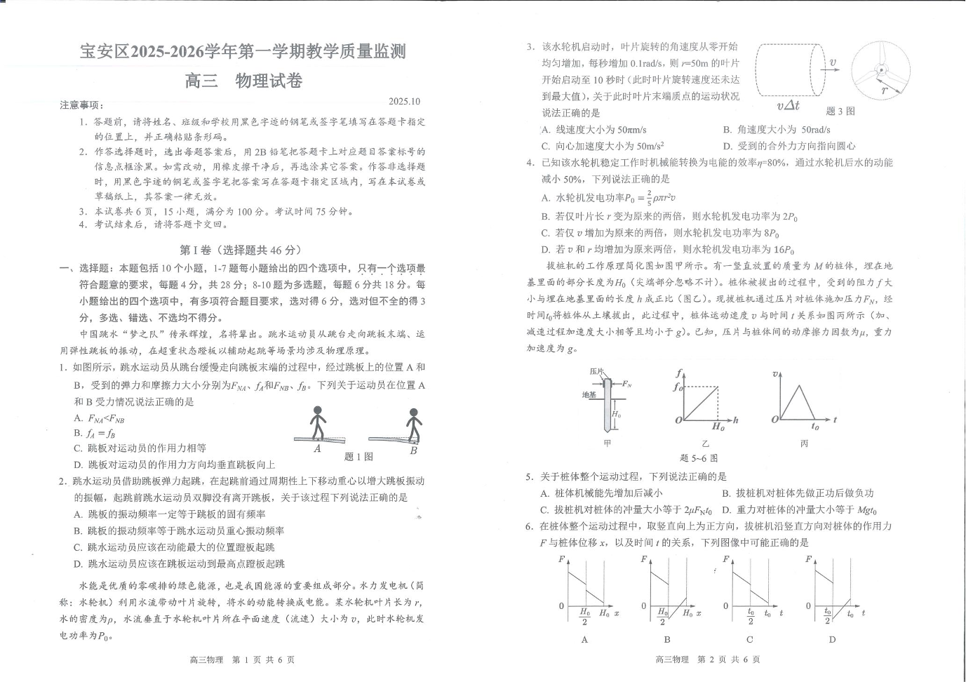 高三物理--广东省深圳市宝安区2026届高三上学期10月教学质量检测
