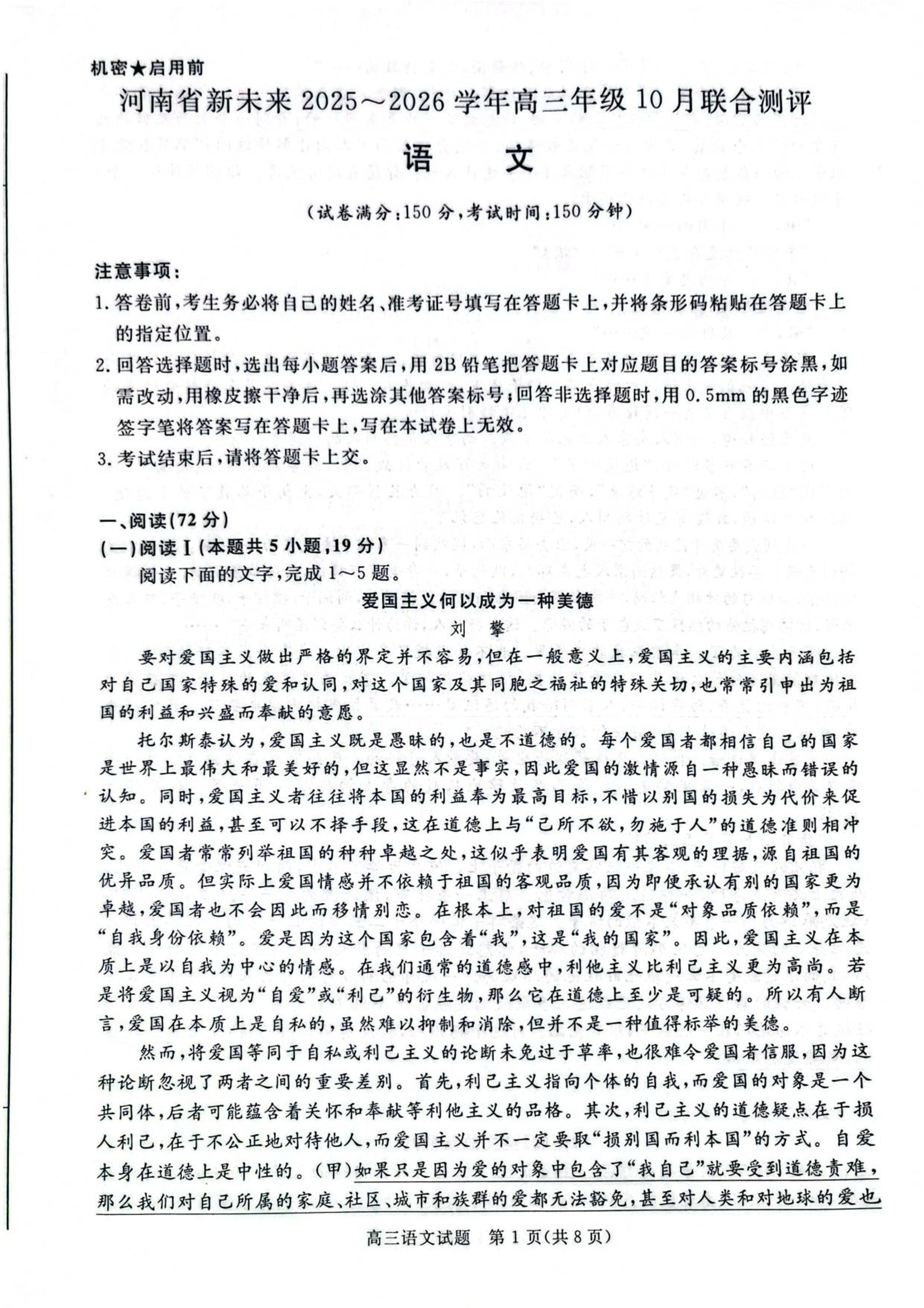 高三语文--河南省新未来大联考2026届高三上学期10月联合测评