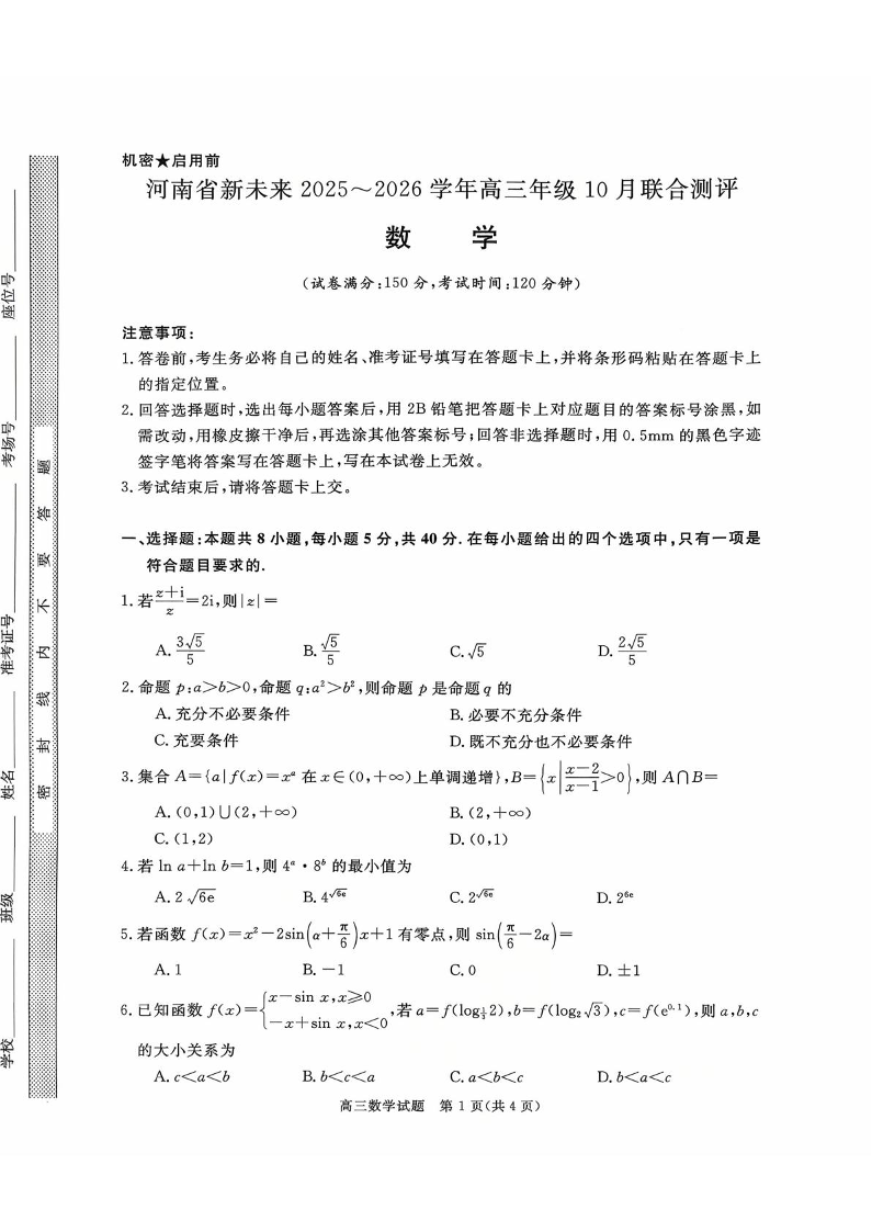 高三数学+答案--河南省新未来大联考2026届高三上学期10月联合测评