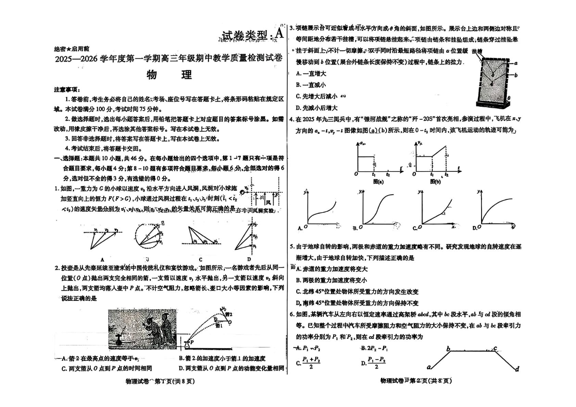 高三物理 +答案--内蒙古包头市2026届高三上学期期中教学质量检测