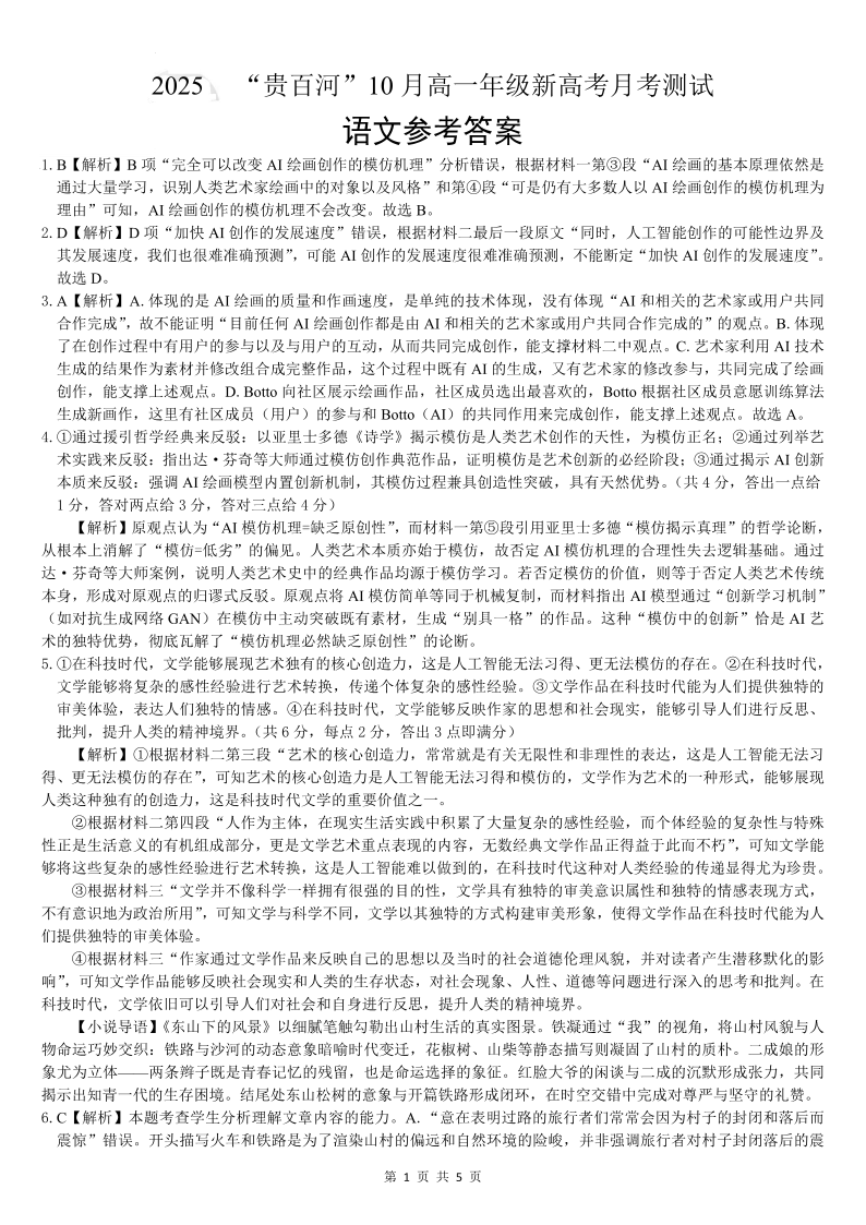 高一语文答案--广西贵百河2025-2026学年高一上学期10月考试卷
