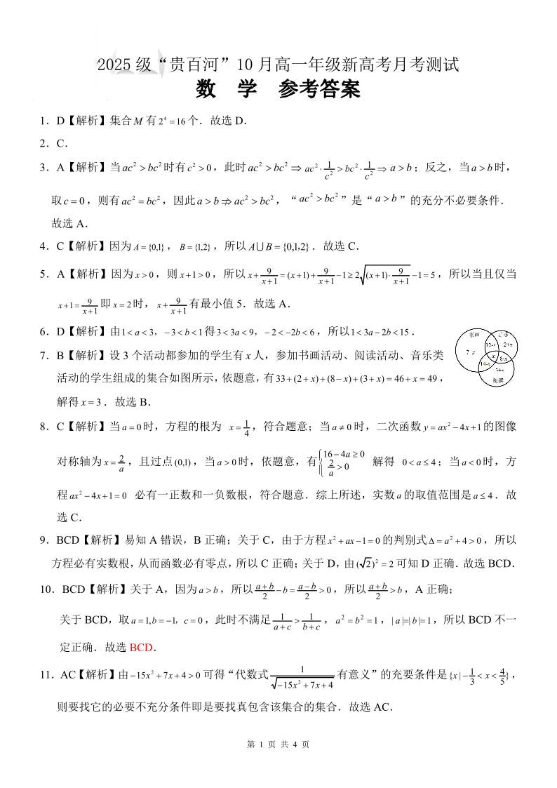 高一数学答案--广西贵百河2025-2026学年高一上学期10月考试卷