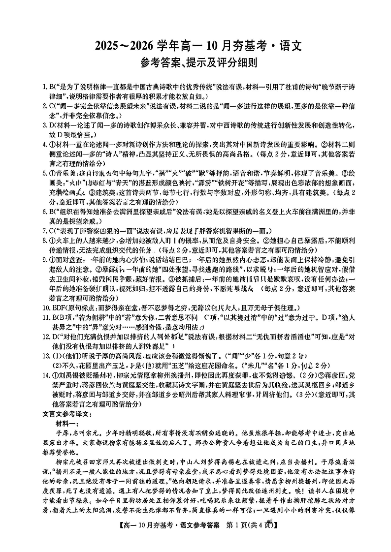 高三语文答案--山西省三晋卓越联盟2025-2026学年高一10月夯基考