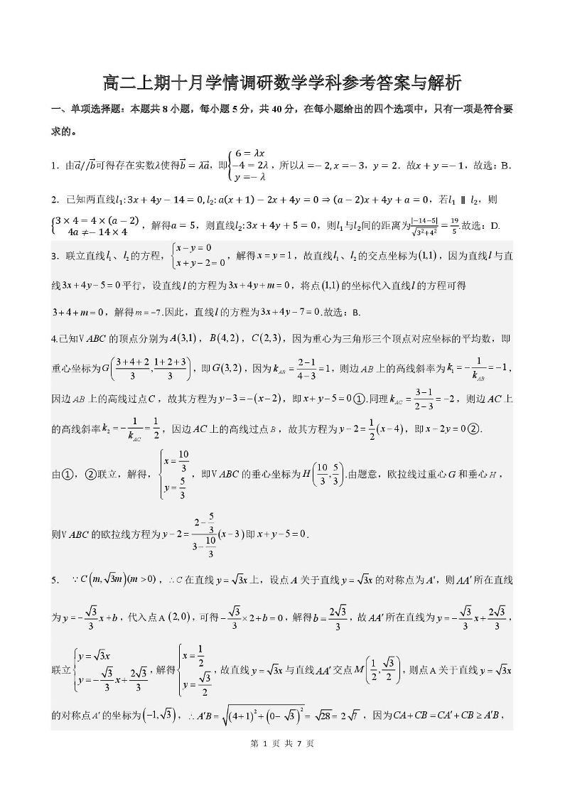高二数学答案--河南省郑州市第二高级中学2025-2026学年高二上学期10月月考