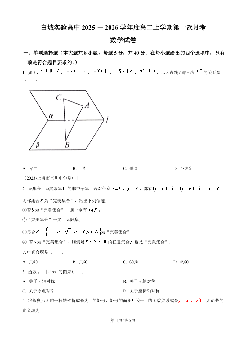 高二数学(原卷版)--吉林省白城市实验高级中学2025-2026学年高二上学期10月月考
