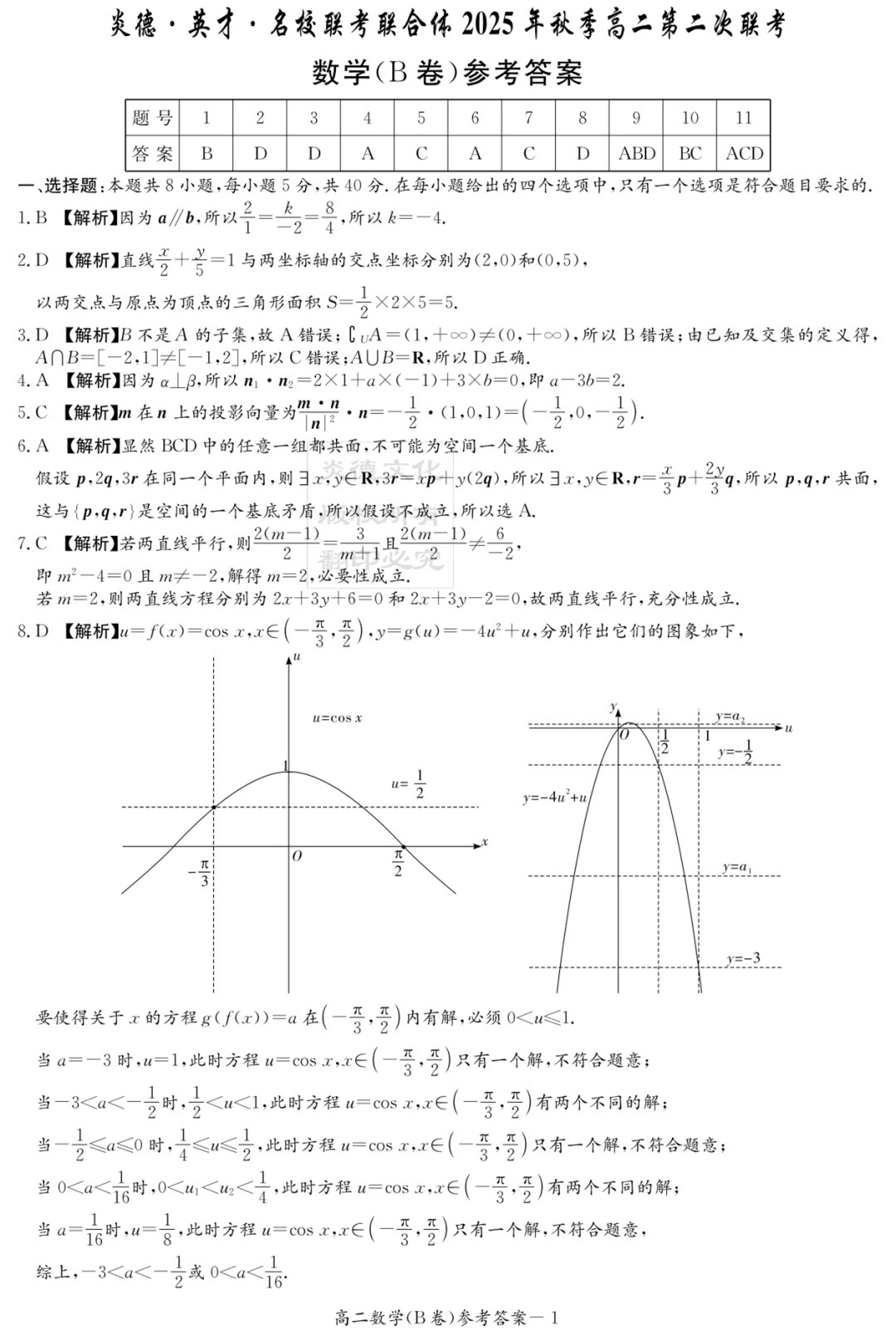高二数学B答案--湖南省炎德英才名校联考联合体2025年秋季高二第二次联考