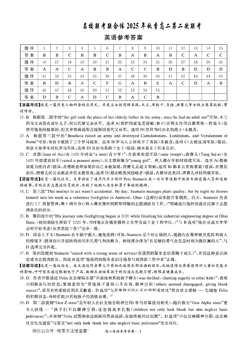 高二英语答案--湖南省炎德英才名校联考联合体2025年秋季高二第二次联考