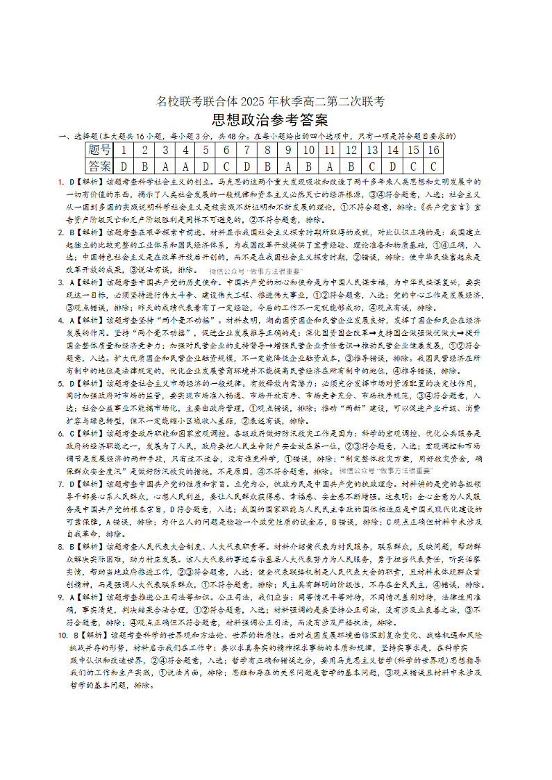 高二政治答案--湖南省炎德英才名校联考联合体2025年秋季高二第二次联考