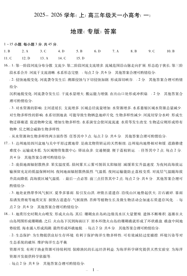 高三地理答案--河南省天一大联考2026届高三(上)天一小高考(一)