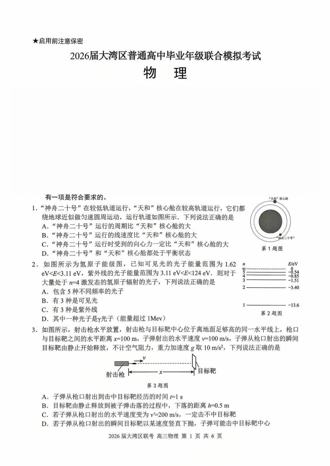 高三物理+答案--广东省大湾区2026届高三10月联合模拟考试