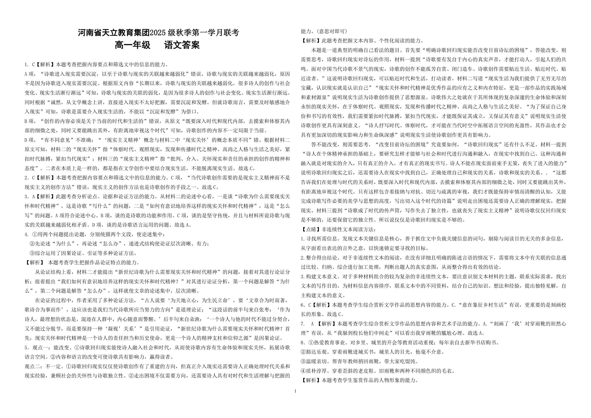高一语文答案--河南省天立教育集团2025-2026学年高一上学期10月联考