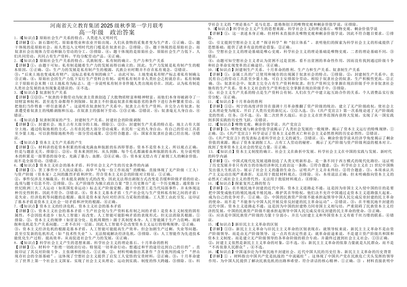 高一政治答案--河南省天立教育集团2025-2026学年高一上学期10月联考