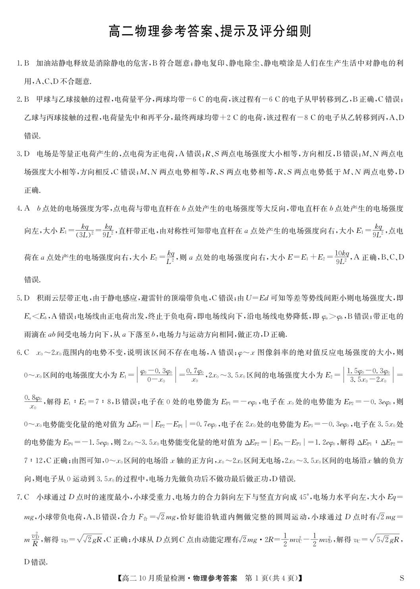 高二物理--河北省保定市八校2025-2026学年高二上学期10月月考