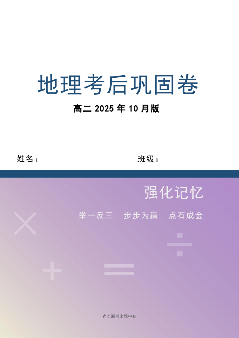 高二地理--辽宁省点石联考2025-2026学年高二10月巩固卷