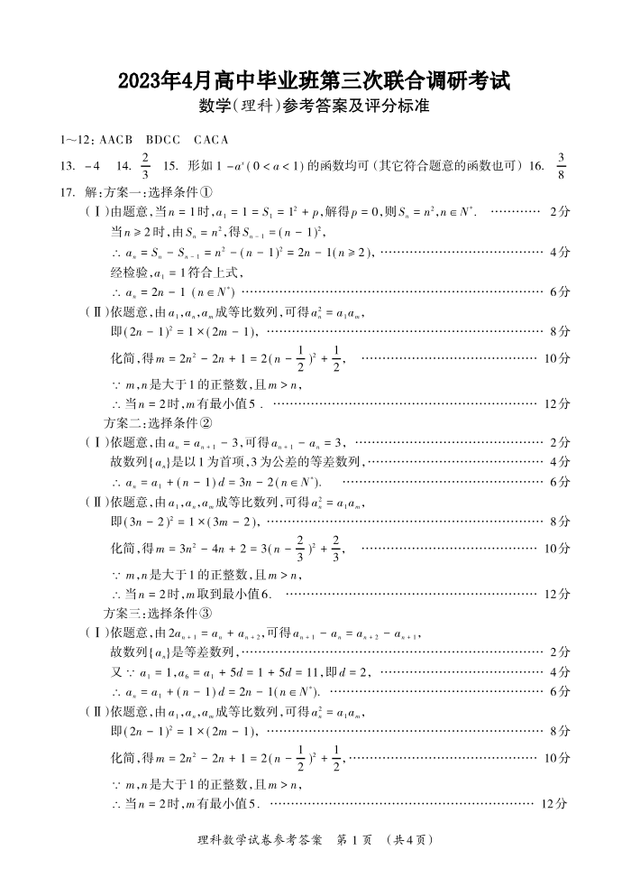 高三理数答案--广西2023届高中毕业班第三次联合调研考试