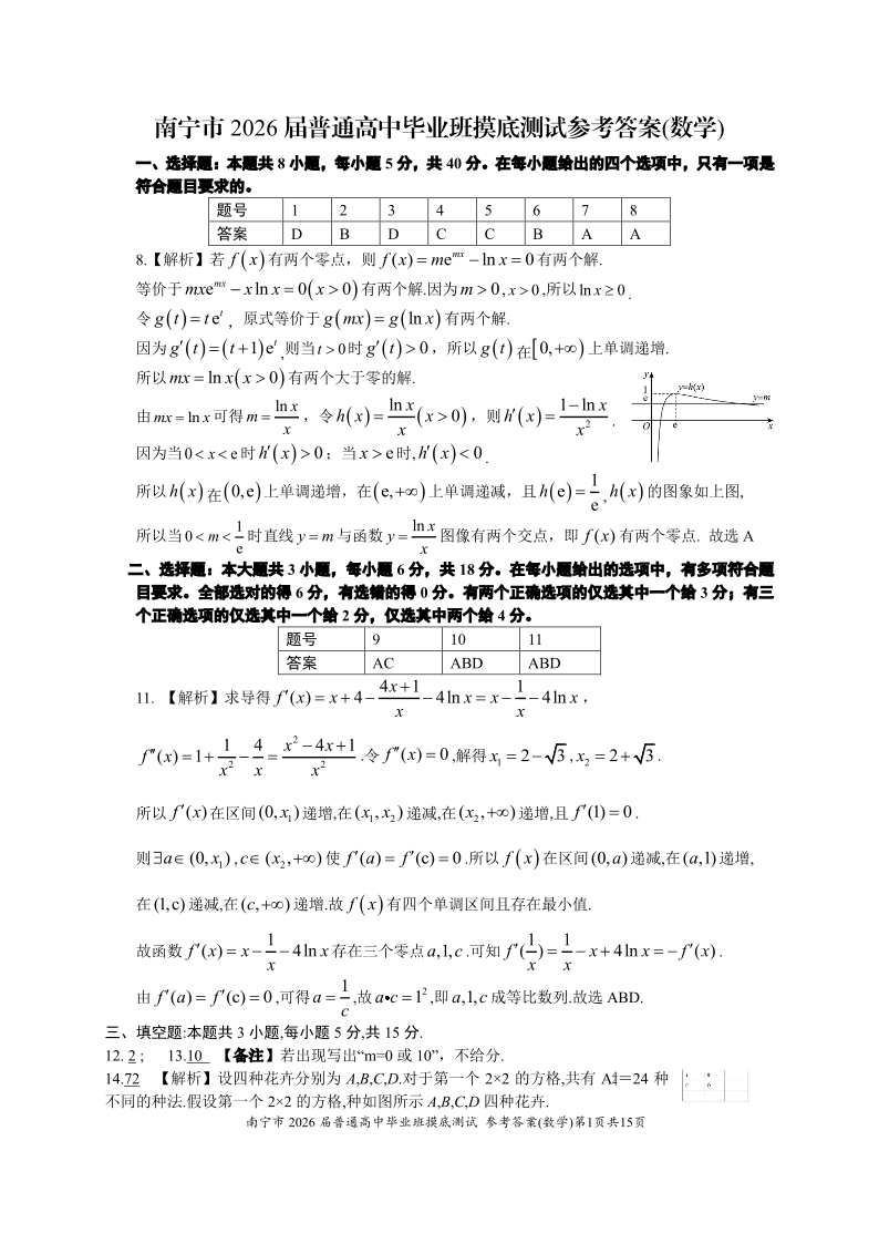 高三数学答案--广西省南宁市2026届高中毕业班10月摸底测试