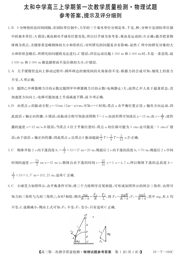 高三物理答案--安徽省阜阳市太和中学2026届高三上学期10月月考