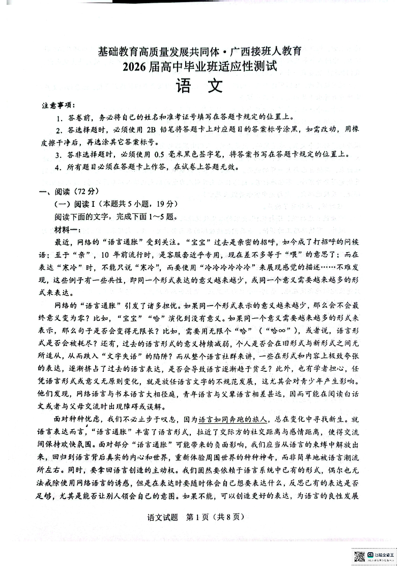 高三语文--广西接班人教育基础教育高质量发展共同体2026 届高中毕业班适应性测试