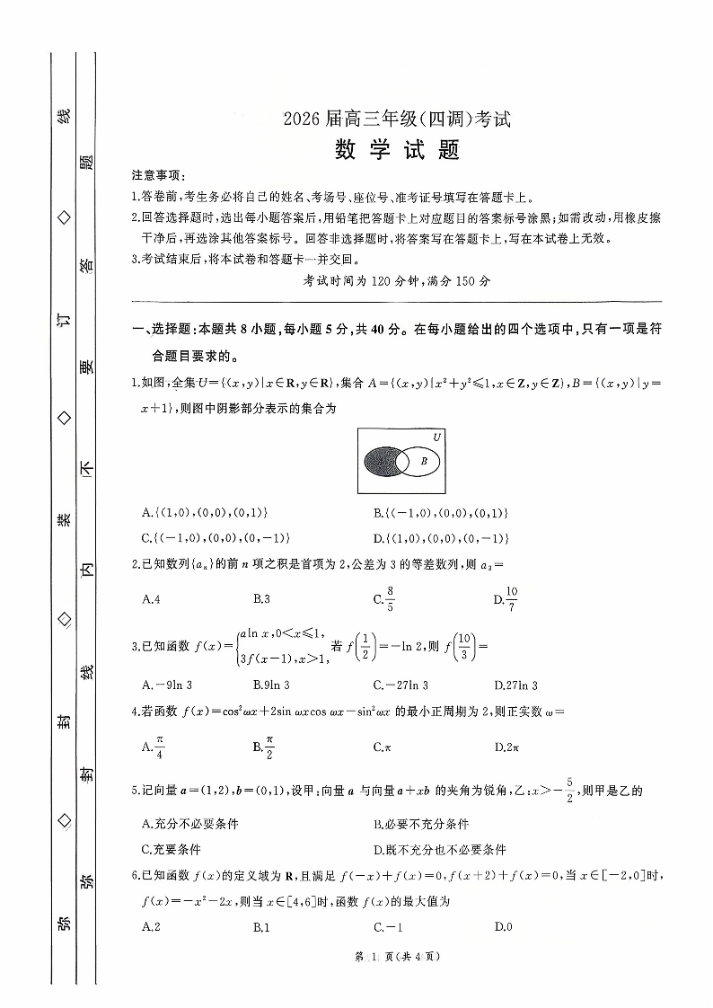 高三数学+答案--河北省衡水市2026届高三上学期四调考试