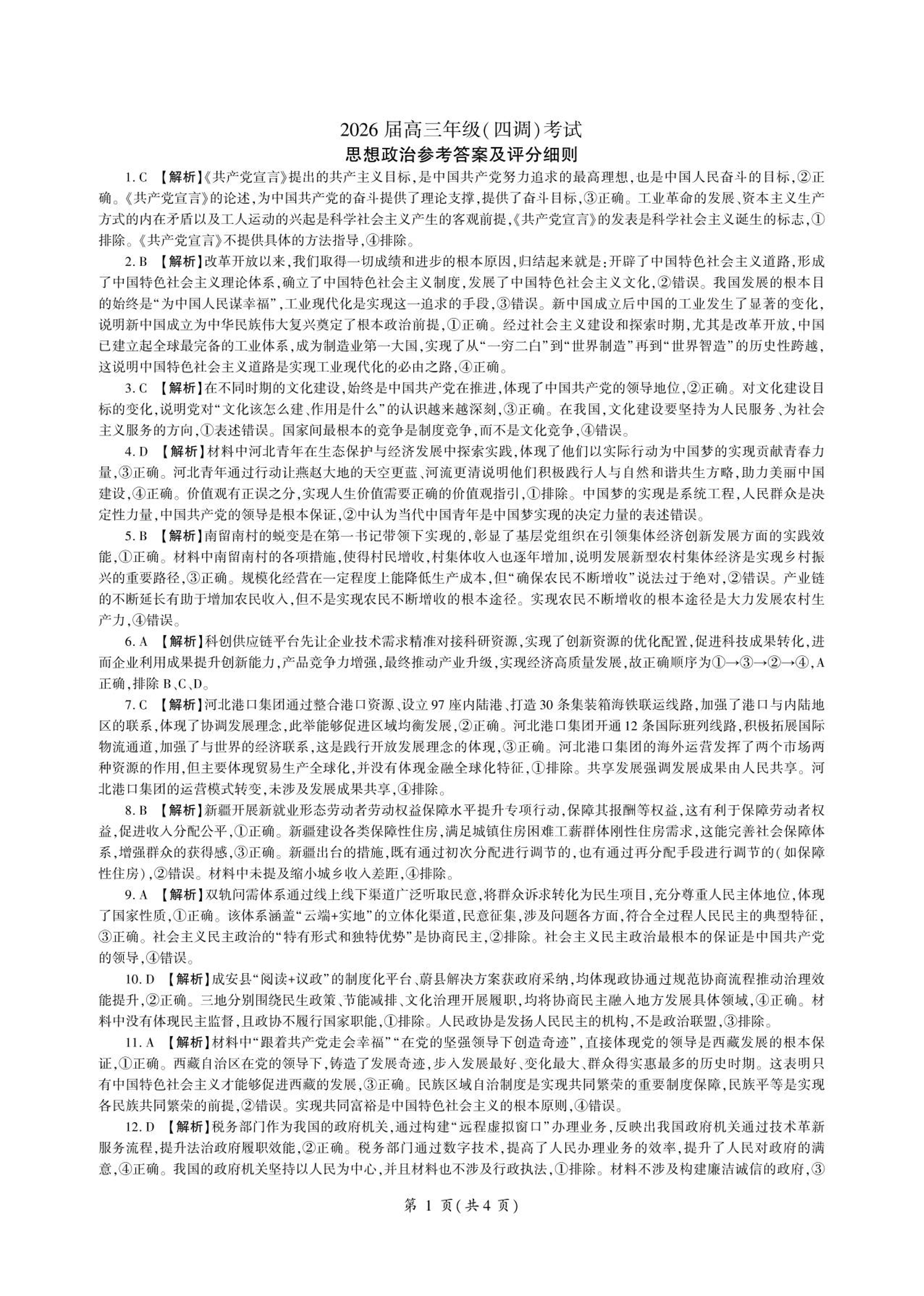 高三政治答案--河北省衡水市2026届高三上学期四调考试