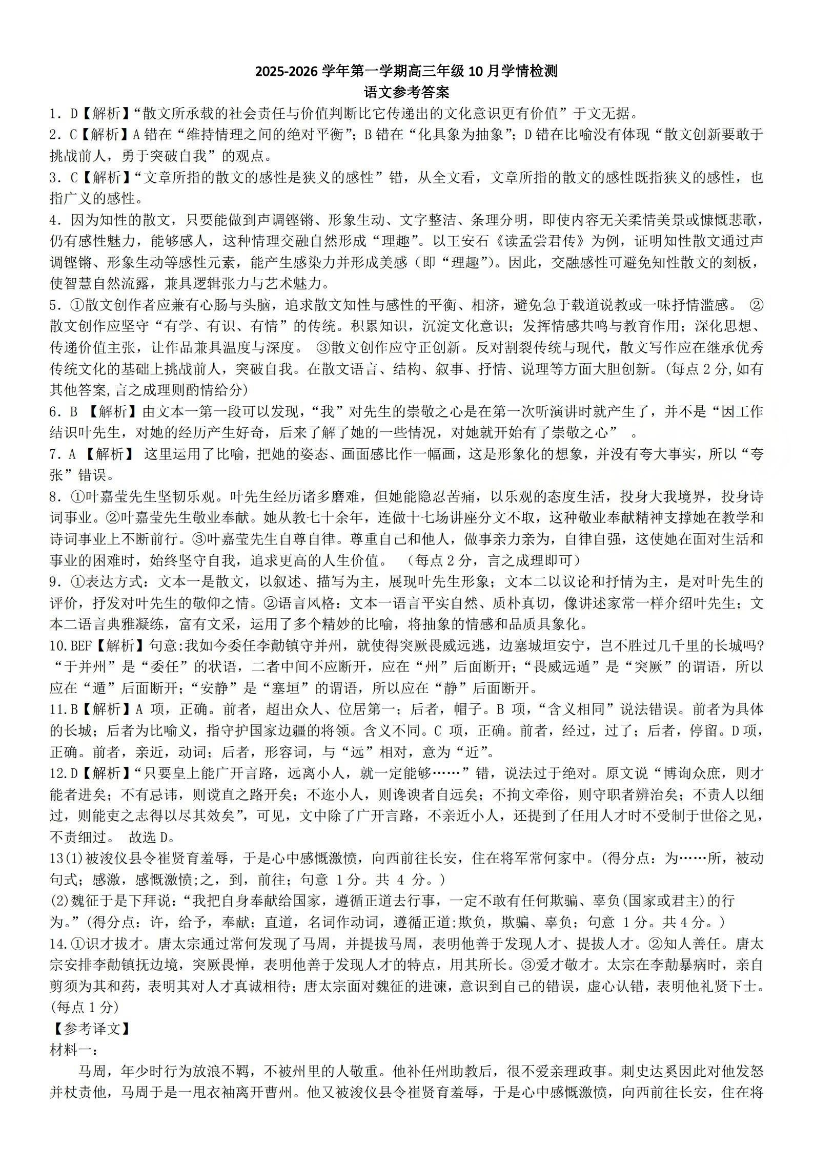 高三语文答案--山西省三重教育2026届第一学期高三年级10月学情检测