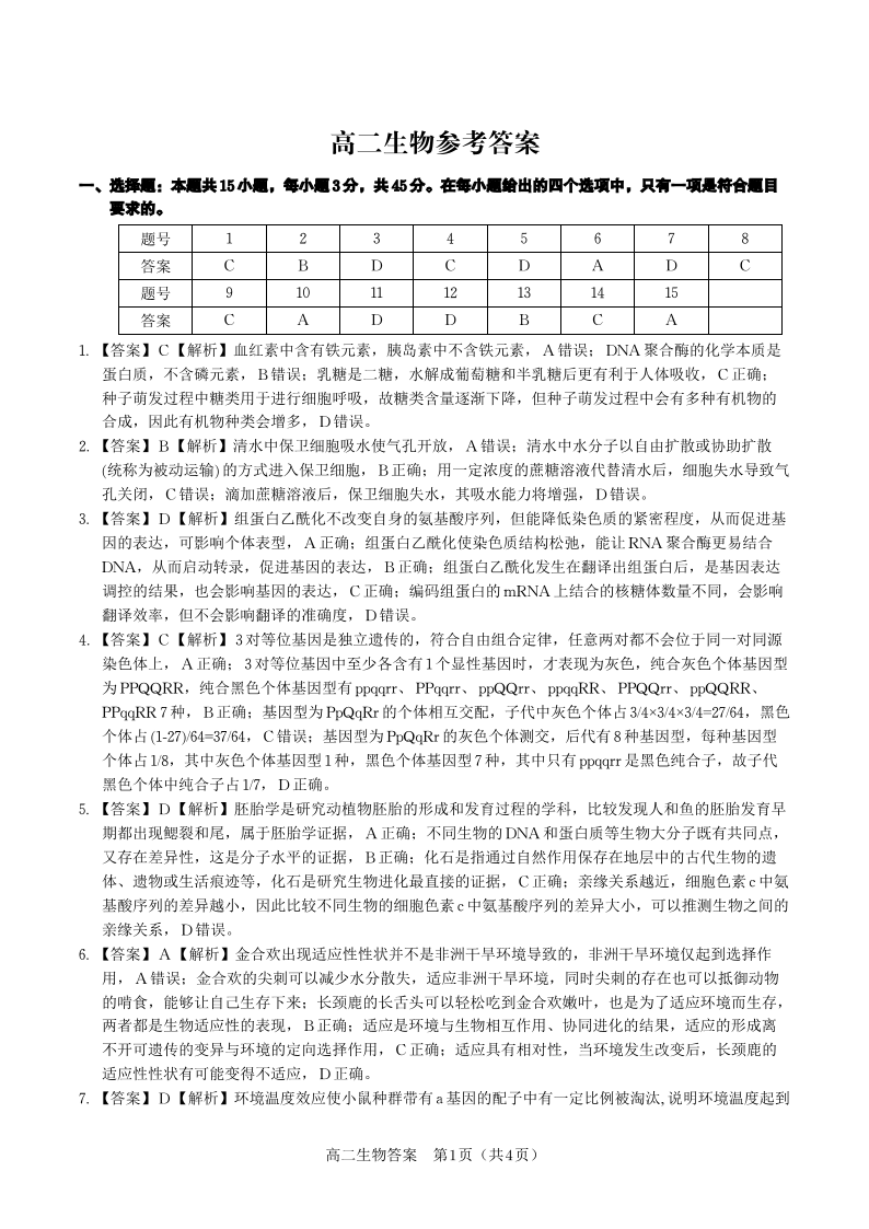 高二生物答案--安徽省皖江名校联盟2025-2026学年高二上学期10月阶段考