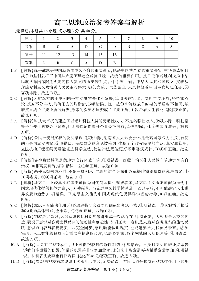 高二政治答案--安徽省皖江名校联盟2025-2026学年高二上学期10月阶段考
