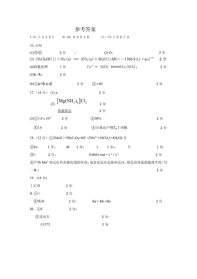 高二化学答案--湖北省武汉市问津联盟2025-2026学年高二上学期10月联考