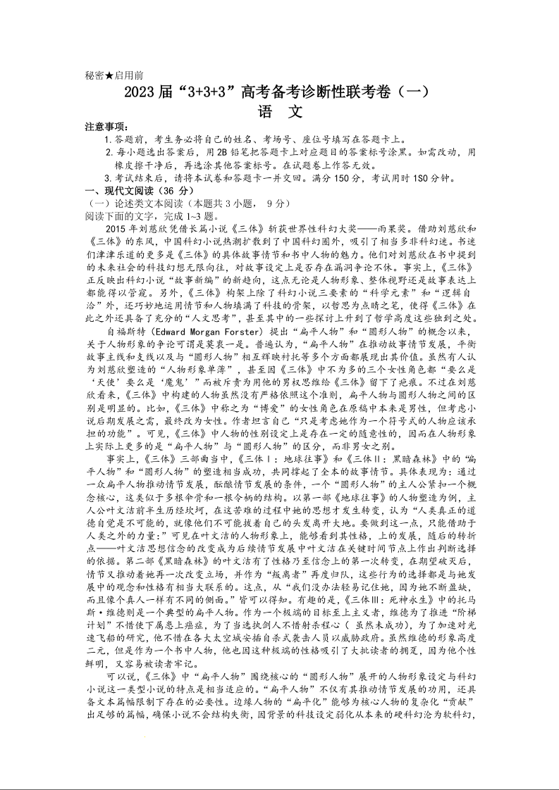 高三语文--贵州省2023届3+3+3高考备考诊断性联考(一)