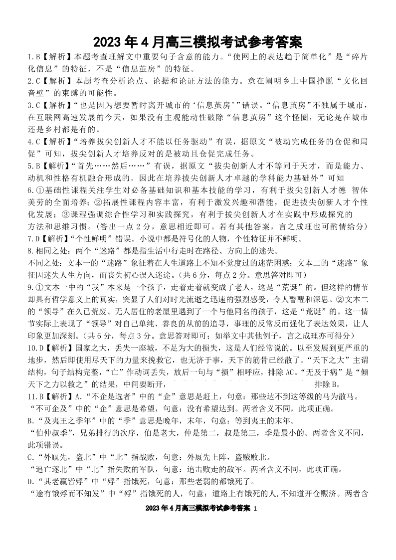 高三语文答案--广西壮族自治区玉林市2023届高三下学期三模