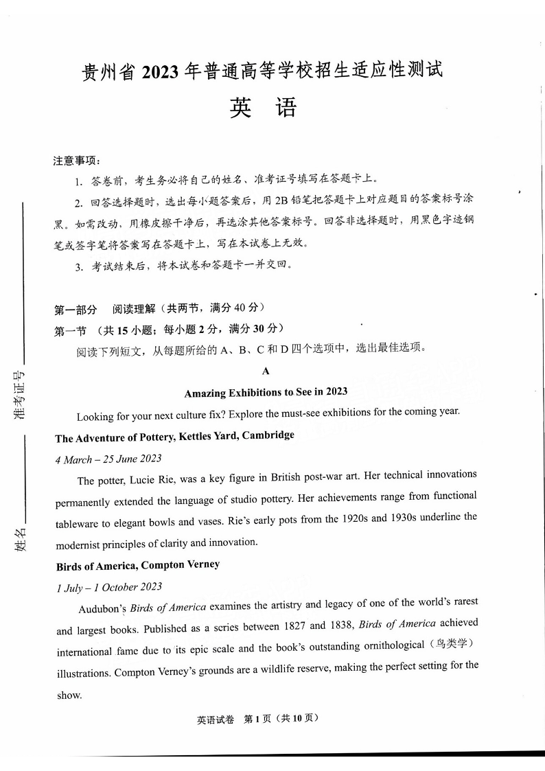 高三英语+答案--贵州省 2023 年普通高等学校招生适应性测试
