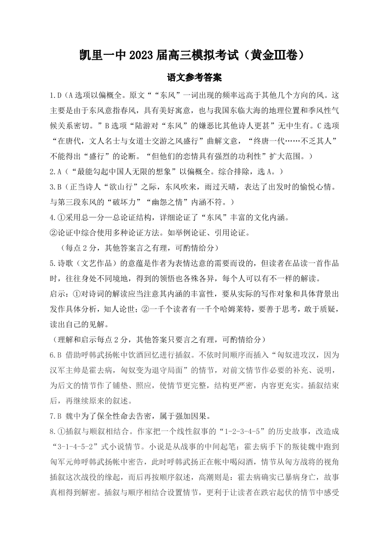 高三语文答案--贵州省凯里市第一中学2023届高三三模