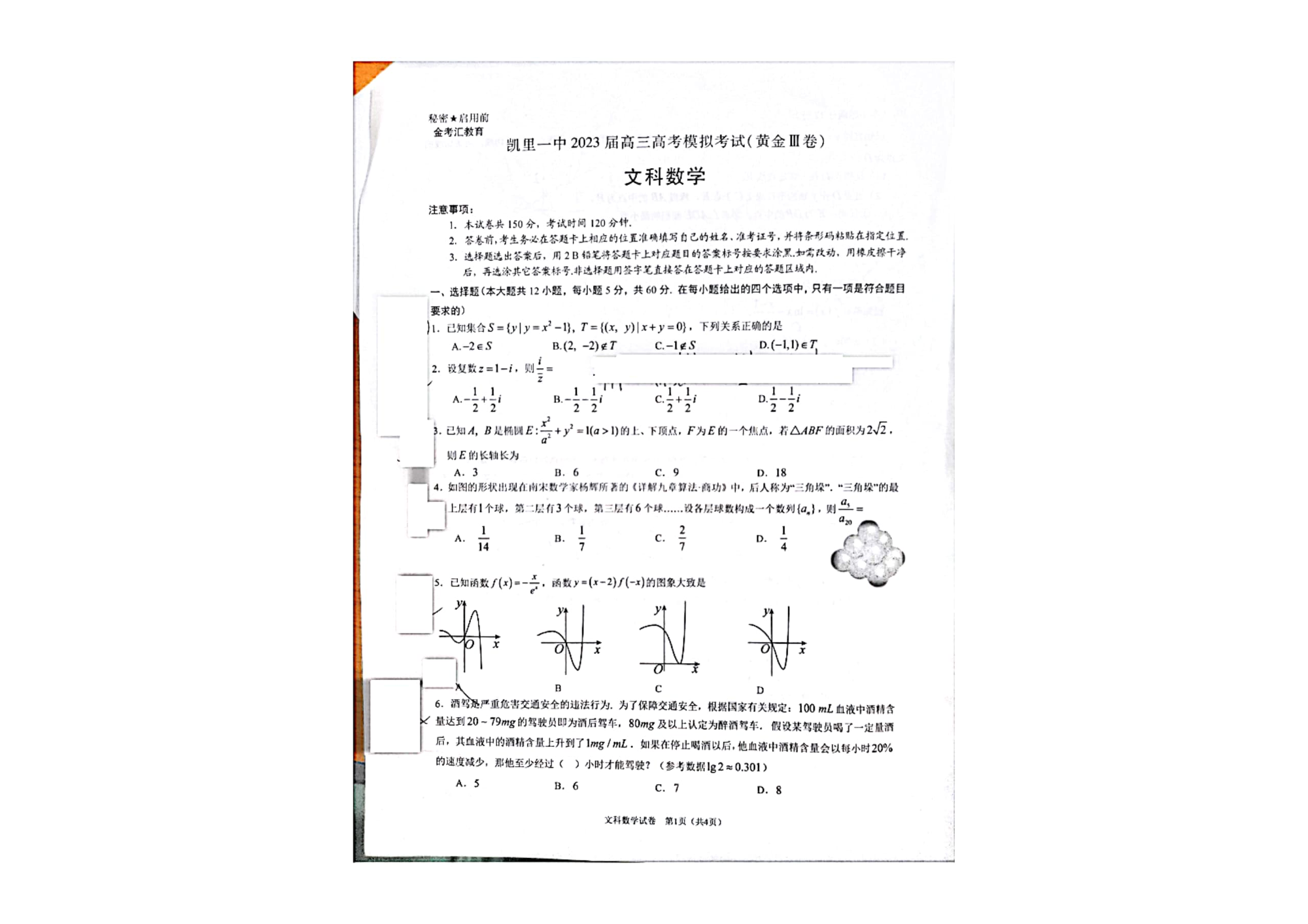 高三文数--贵州省凯里市第一中学2023届高三三模