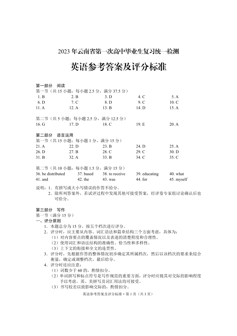 高三英语答案--安徽吉林黑龙江云南四省2023届高三适应性考试