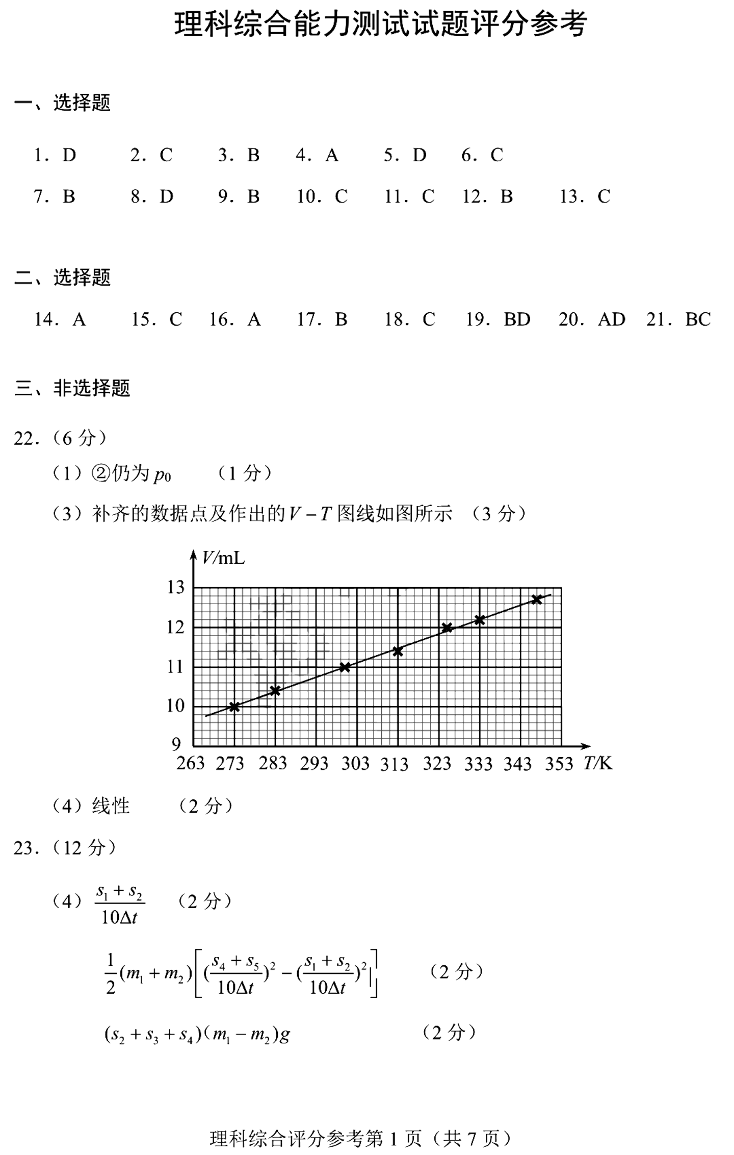 高三理综答案--安徽吉林黑龙江云南四省2023届高三适应性考试