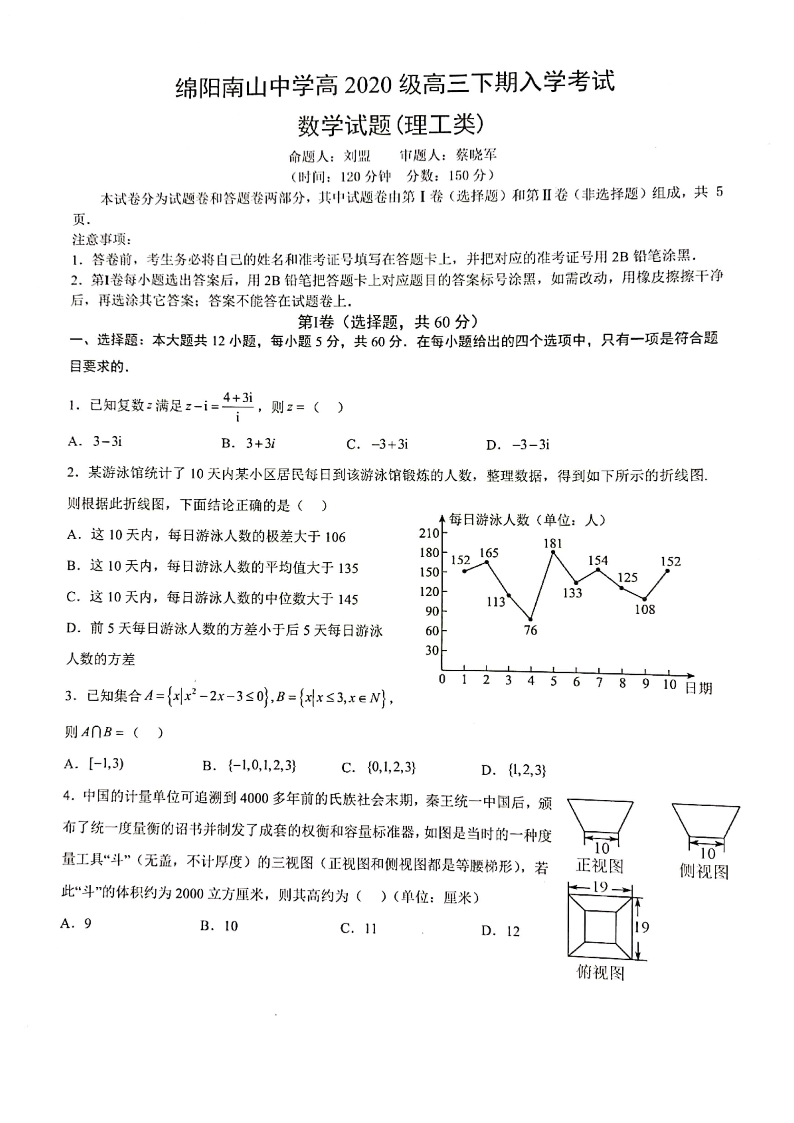 高三理数--四川省绵阳南山中学2022-2023学年高三下学期开学考试