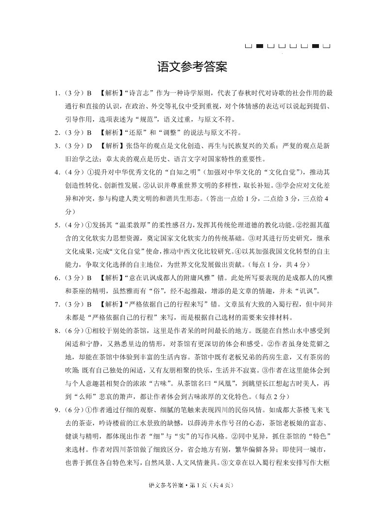 高三语文答案--云南师大附中2023届高考适应性月考卷(七)