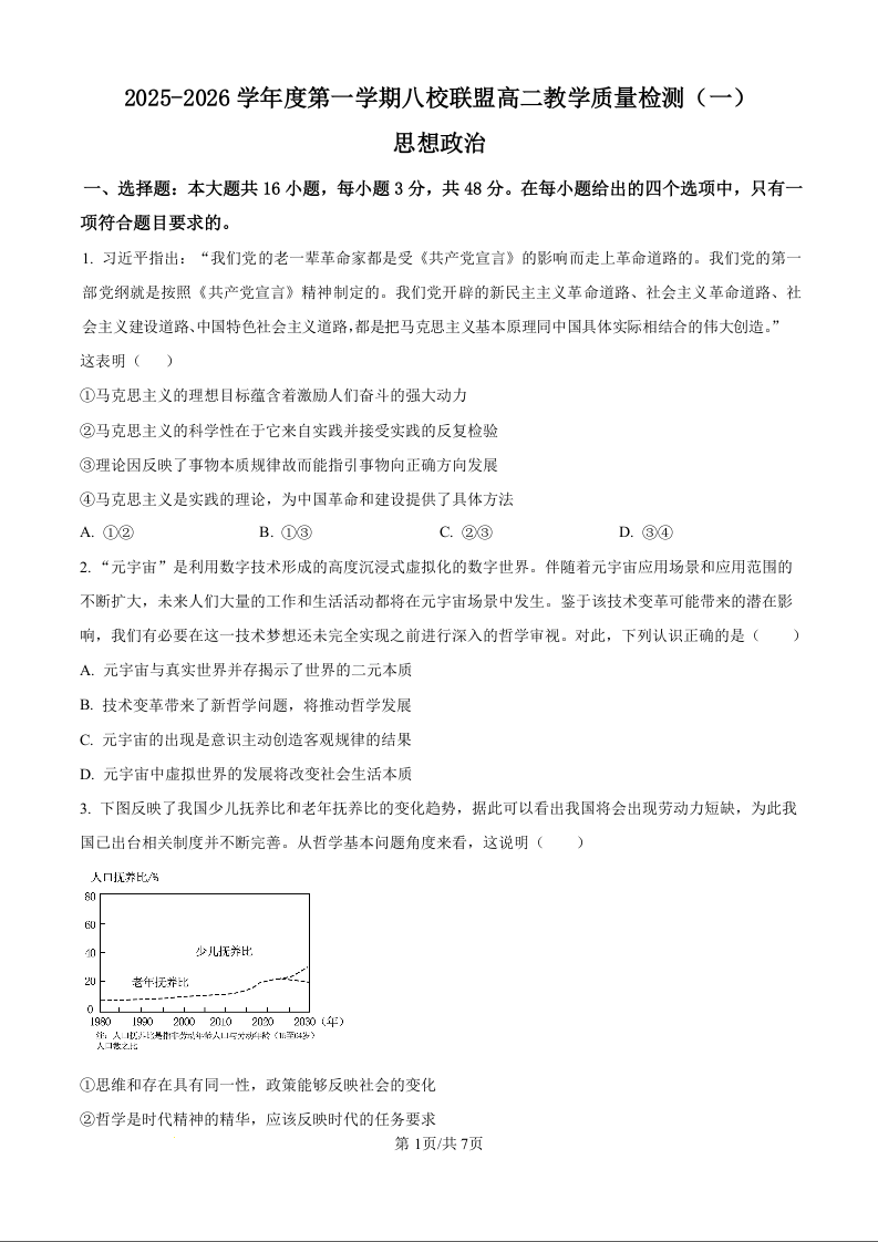 高二政治(原卷版)--广东省八校联盟2025-2026学年高二上学期教学质量检测(一)