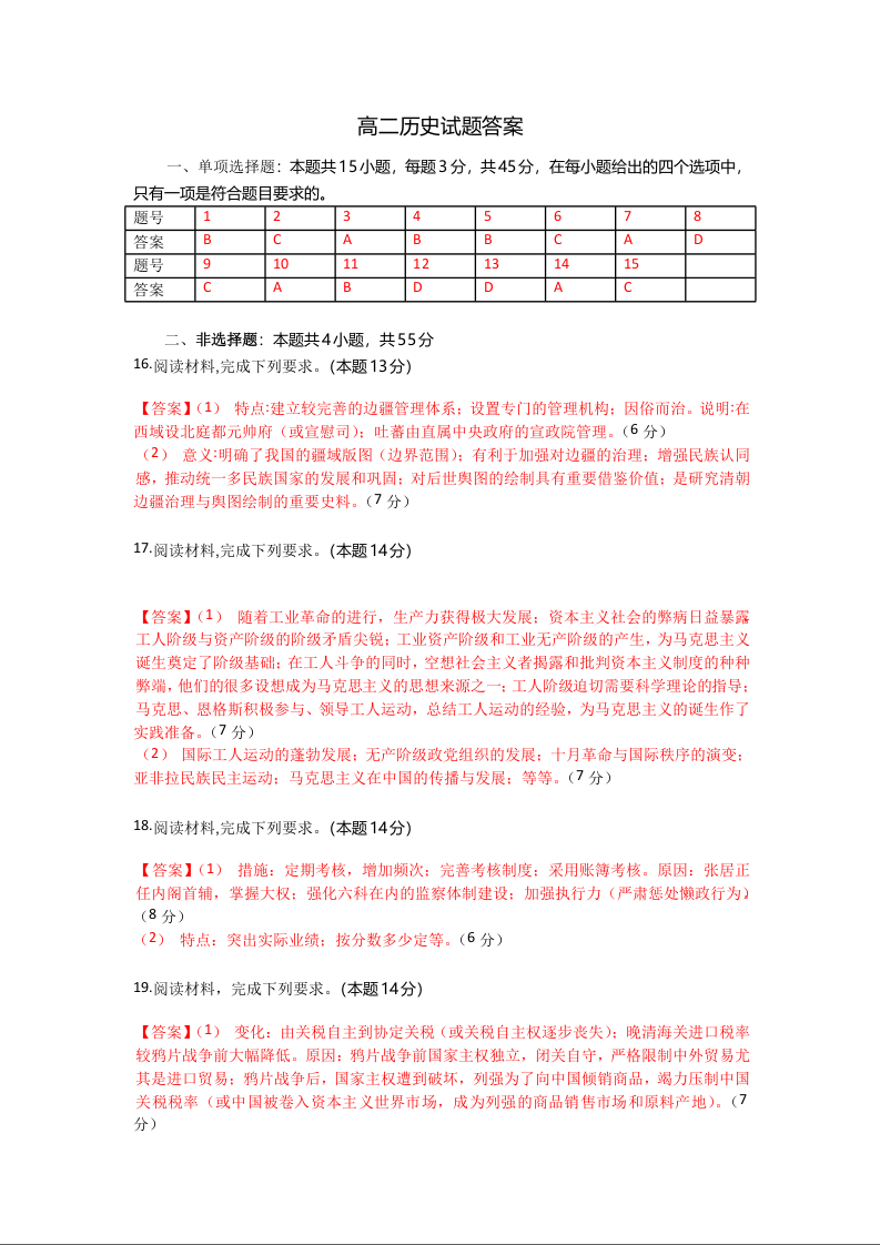 高二历史答案--湖北省部分高中协作体2025-2026学年高二上学期10月月考