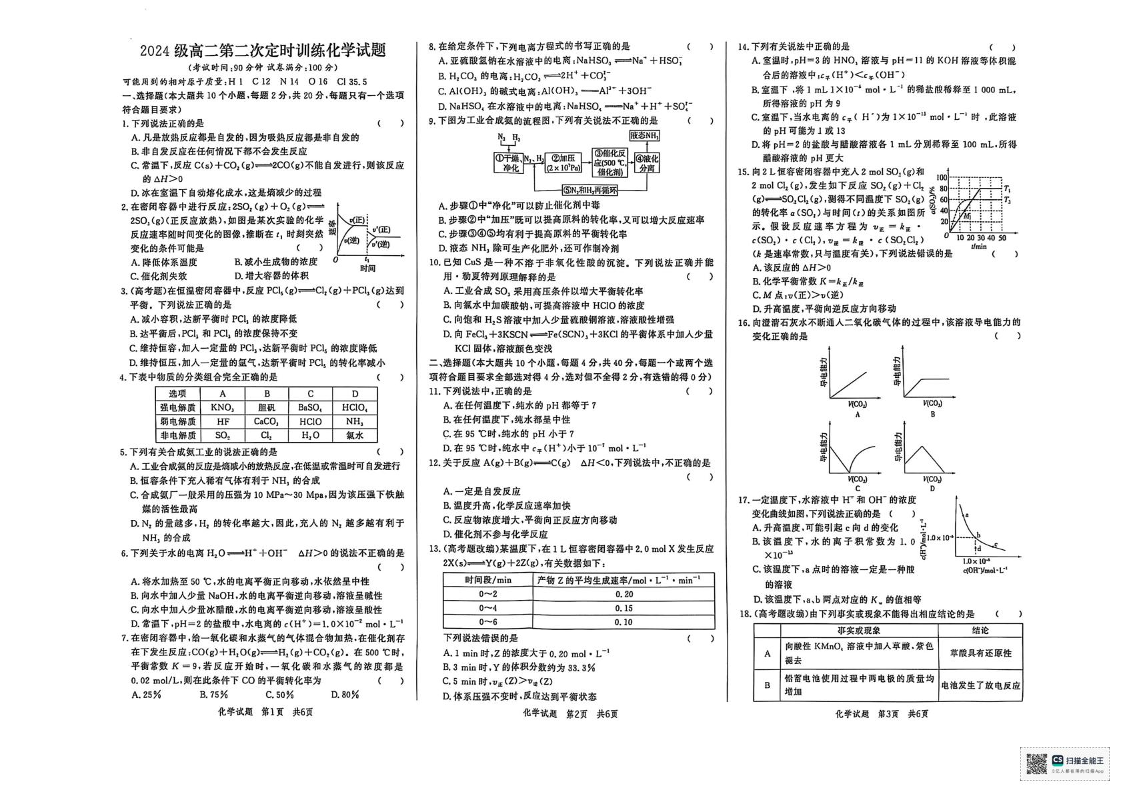 高二化学+答案--山东省菏泽市鄄城县第一中学2025-2026学年高二上学期10月月考
