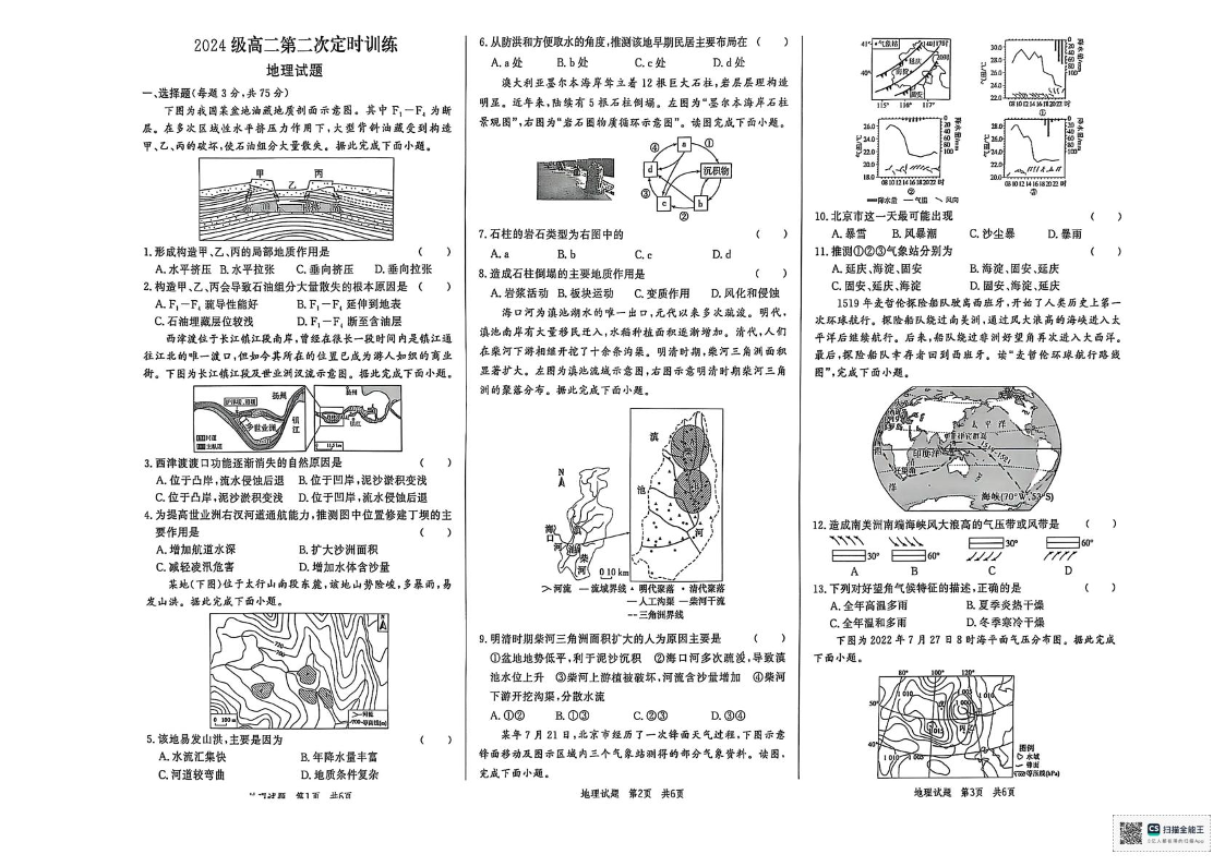 高二地理+答案--山东省菏泽市鄄城县第一中学2025-2026学年高二上学期10月月考