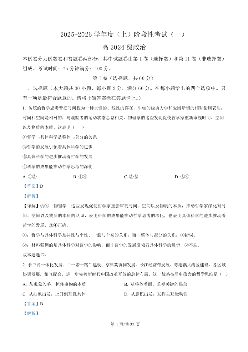 高二政治(解析版)--四川省成都市成华区某校2025-2026学年高二上学期阶段性考试(一)