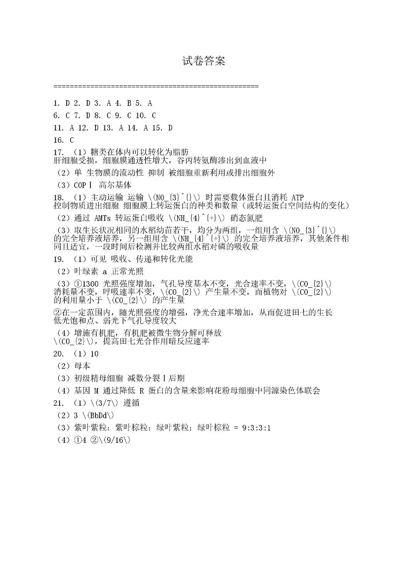 高三生物答案--河南省信阳市2026届高三第一次教学质量检测地理
